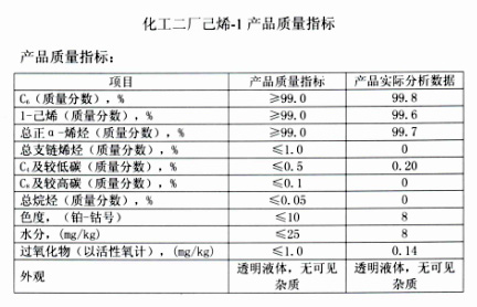 化工二廠已烯-1產(chǎn)品質(zhì)量指標(biāo)