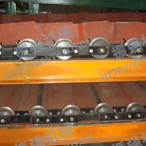 多底板往復(fù)式輸送機采用大節(jié)距滾針彎板鏈為輸送介質(zhì)